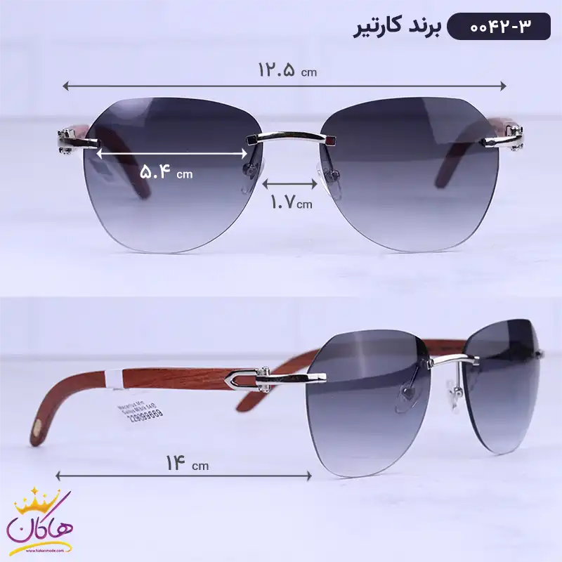 ابعاد عینک آفتابی مردانه کارتیر دسته چوبی 0042/3