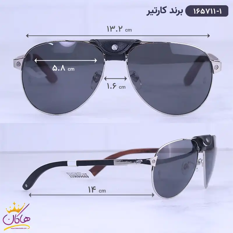 عینک آفتابی مردانه کارتیر دسته چوبی 165711/1 ابعاد
