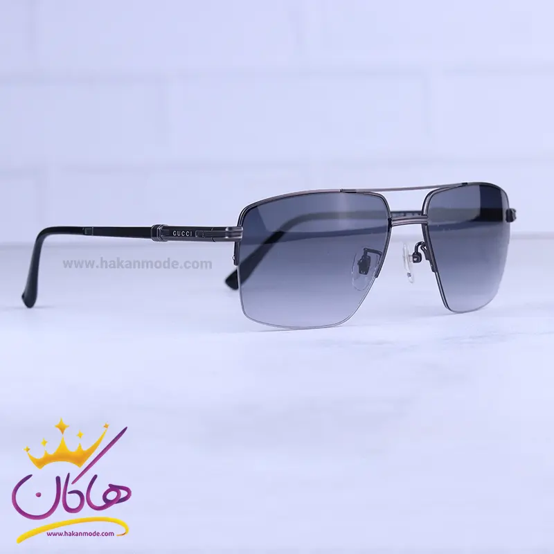 عینک آفتابی مردانه گوچی نیم فریم دودی فلزی GG1351/3