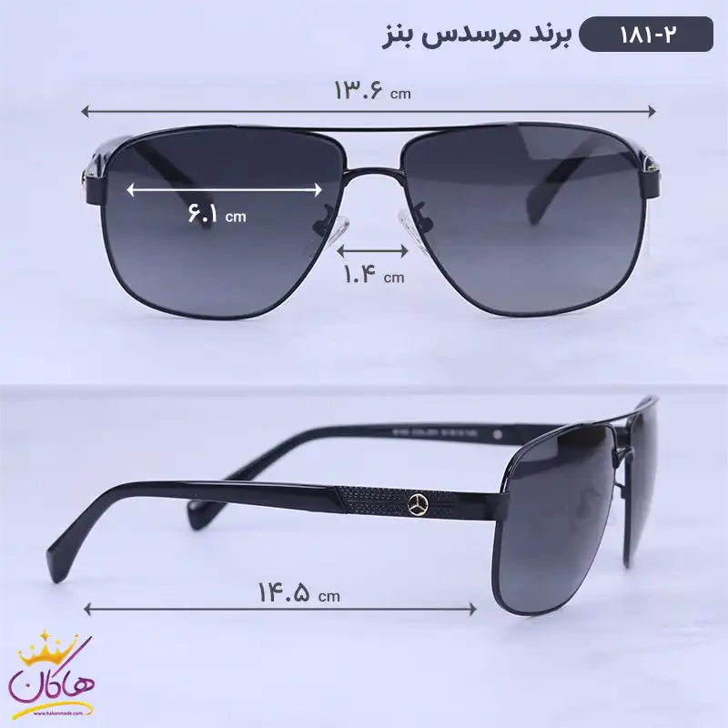 عینک آفتابی مرسدس بنز مردانه فلزی پلاریزه 181/2 نمای ابعاد