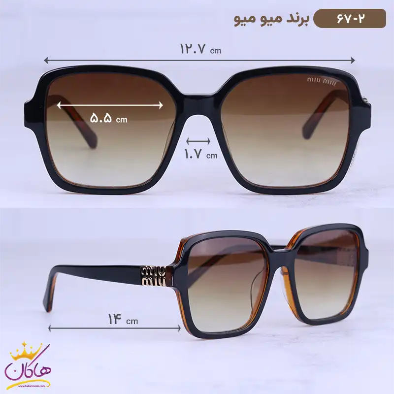 عینک آفتابی میومیو زنانه عینک مربعی مدل 67 نمای ابعاد