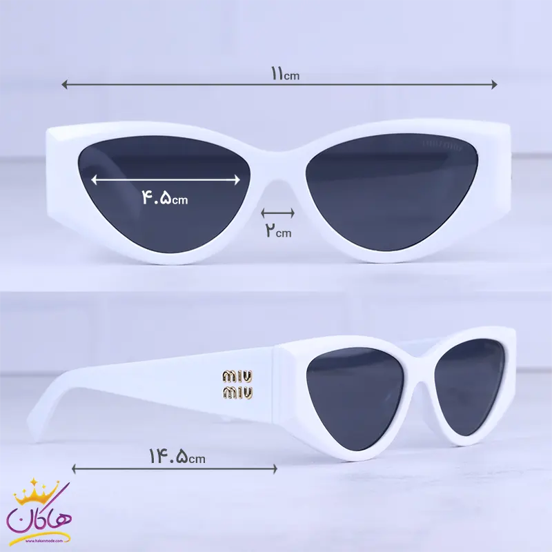 ابعاد عینک آفتابی میو میو زنانه فریم سفید گربه ای LH105/1