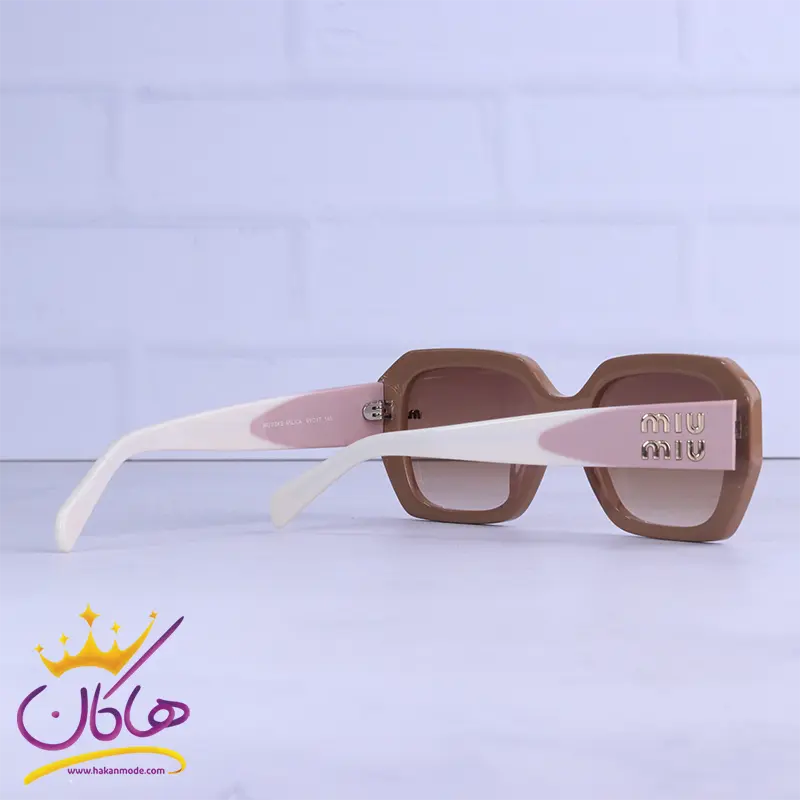 فریم این عینک که مهمترین قسمت آن است از نوع تمام فریم به شکل مربع است. این فریم قهوهای/کرم به خوبی روی چشم قرار میگیرد. عینک آفتابی میو میو زنانه با پهنای حدود 13.9 سانتیمتر تقریبا برای تمام فرمهای صورت مناسب است اما بیشتر افرادی که صورتهای بیضی، قلبی و گرد دارند، از طرفداران این مدل عینک هستند. پل عینک، کائوچو و بینی گیر آن قسمتی از فریم است. عرض پل 1.7 سانت است و به خوبی روی بینی می نشیند. رنگ عدسی قهوهای و عرض آن حدود 6.1 سانت است و چشم را کامل می پوشاند و در وسعت دید اشکالی به وجود نمیآورد. دسته عینک به رنگ کرم/صورتی و نسبتا پهن است که نام برند میو میو به رنگ طلایی روی آن دیده میشود. طول دسته حدود 14.5 سانتیمتر است و با یک قوس ملایم تا پشت گوش میرود. اگر به درون دسته توجه کنید سیم کشی فلزی داخل آن را میبینید که به استحکام فریم کمک میکند به این مدل دسته و فریم به اصطلاح استیت یا استات گفته میشود. سبکی این عینک کمک میکند تا ساعتهای طولانی یا هنگام رانندگی، عینک را به چشم بزنید و ابدا در قسمت گوشها یا بینی احساس سنگینی و خستگی نکنید. استفاده از این عینک محدودیت سنی و جنسی ندارد.