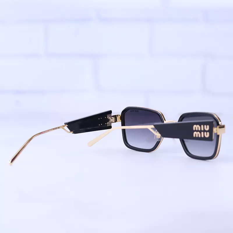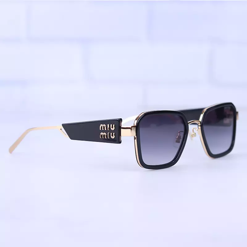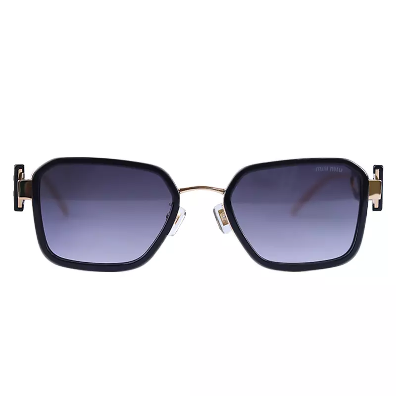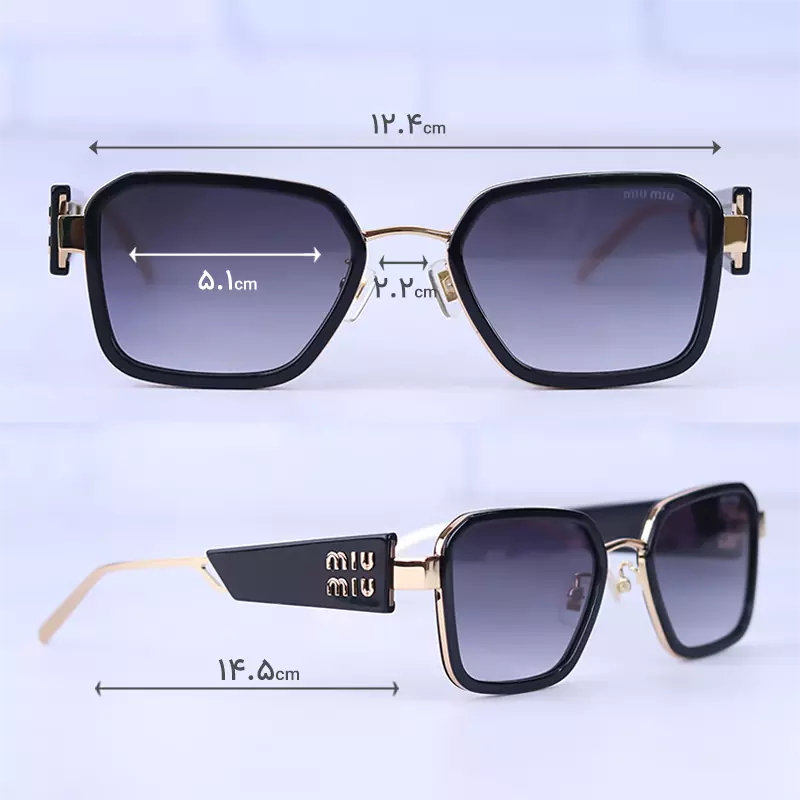 فریم این عینک که مهمترین قسمت آن است از نوع تمام فریم و به شکل مربع است. این فریم طلایی/مشکی به خوبی روی چشم قرار می گیرد. پهنای عینک آفتابی میو میو زنانه حدود 12.4 سانتیمتر است. افرادی که صورتهای گرد، بیضی و قلبی دارند، از طرفداران این مدل عینک هستند. پل عینک، فلزی و بینی گیر لاستیکی آن نرم و منعطف است. رنگ عدسی مشکی و روی آن نام برند میو میو دیده میشود. عرض عدسی حدود 5.1 سانت است و چشم را کامل میپوشاند و در وسعت دید اشکالی به وجود نمیآورد. عرض پل 2.2 سانت است و به خوبی روی بینی مینشیند. دسته عینک مشکی و پهن و شیک است که در ابتدای آن نام برند میو میو دیده میشود. طول دسته حدود 14.5 سانتیمتر است و با یک قوس ملایم تا پشت گوش میرود. اگر به دسته توجه کنید انتهای آن سیم کشی فلزی دارد که به استحکام فریم کمک میکند. سبکی این عینک کمک میکند تا ساعتهای طولانی یا هنگام رانندگی، عینک را به چشم بزنید و ابدا در قسمت گوشها یا بینی احساس سنگینی و خستگی نکنید.