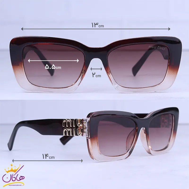 ابعاد عینک آفتابی میو میو زنانه گربه ای قهوه ای SMU07YS/1