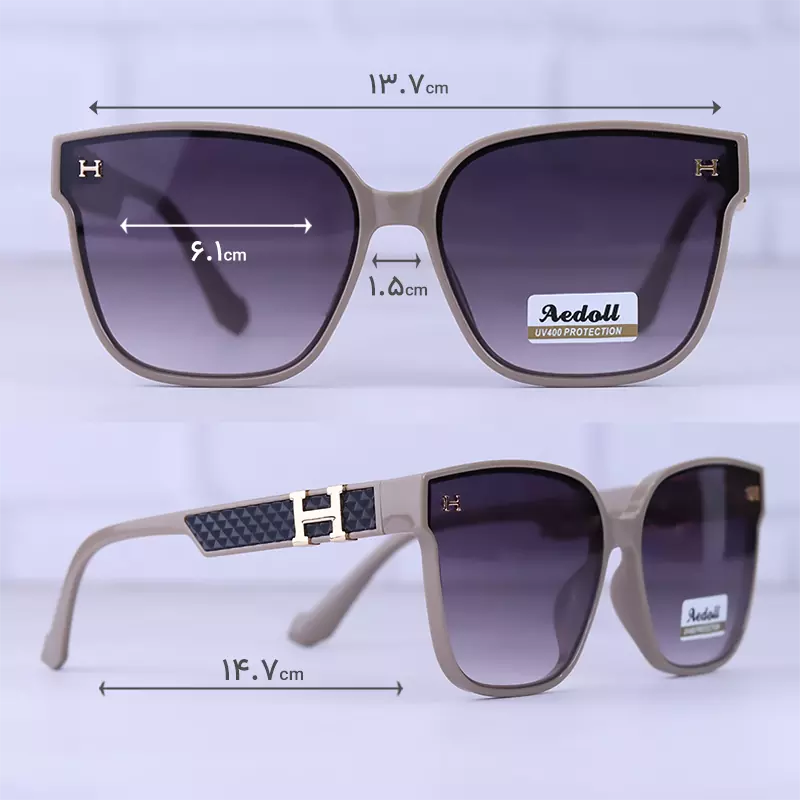 ابعاد عینک آفتابی هرمس زنانه فریم مربع بژ عدسی مشکی 6016/2