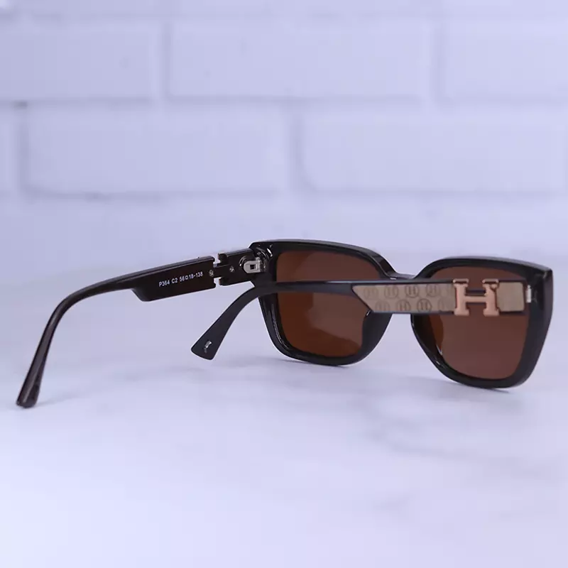 عینک آفتابی هرمس فریم مستطیل قهوه ای پلاریزه P 364/2