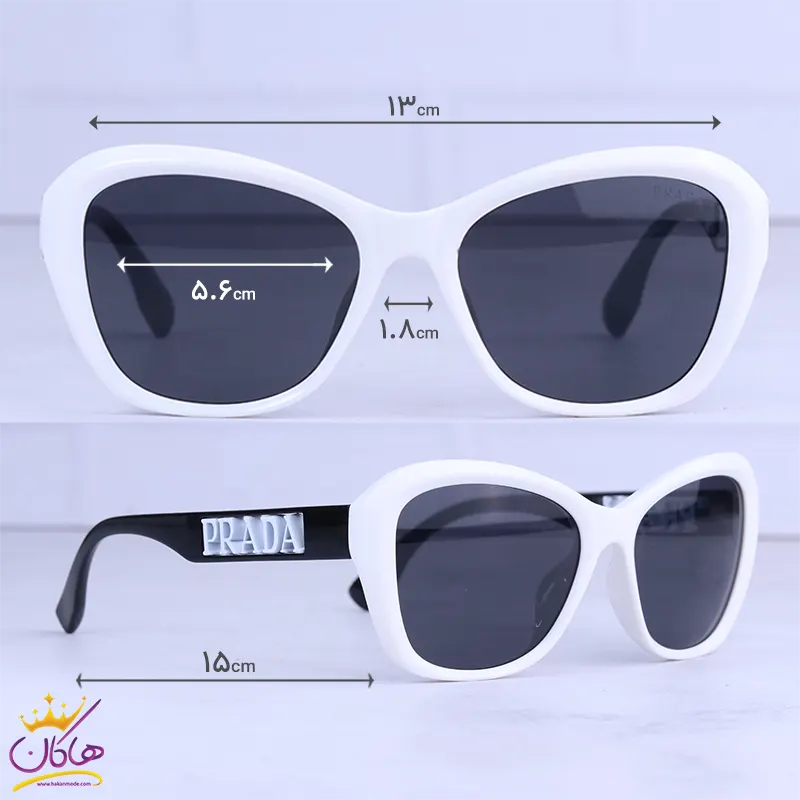 ابعاد عینک آفتابی پرادا زنانه فریم سفید پروانه ای 8891/1