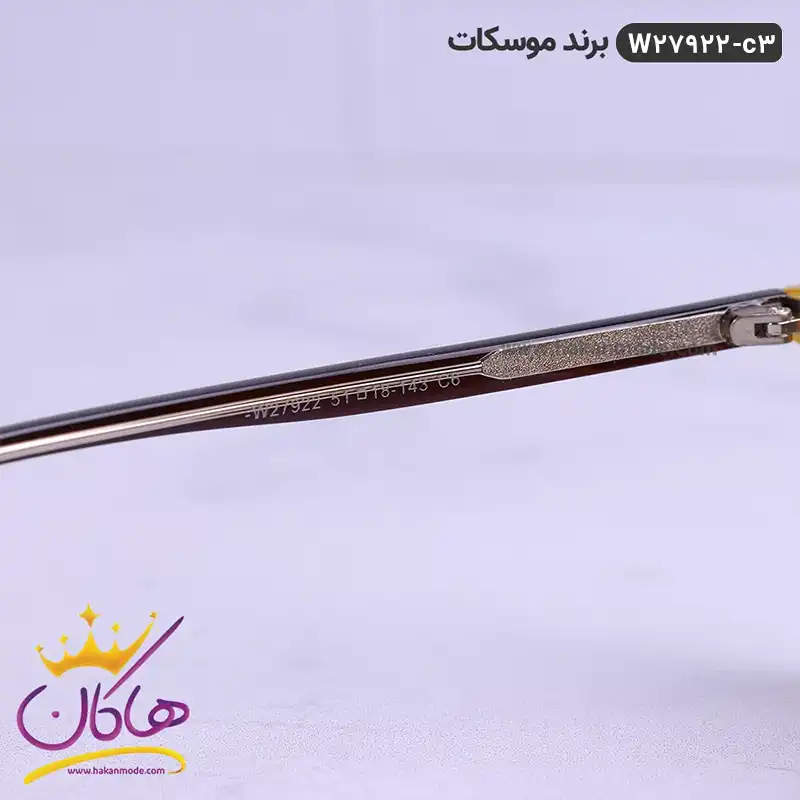 فریم این عینک که مهمترین قسمت آن است از نوع تمام فریم و از مدل مستطیل است. این فریم خردلی شفاف جذاب به خوبی روی چشم قرار می گیرد. عینک آفتابی پلاریزه عسلی موسکات 27922 با پهنای حدود 12 سانتیمتر تقریبا برای تمام فرمهای صورت مناسب است اما بیشتر افرادی که صورتهای قلبی،گرد و بیضی دارند، از طرفداران این مدل عینک هستند. پل عینک، کائوچو و بینی گیر آن قسمتی از فریم است. عرض پل 1.8 سانت است و به خوبی روی بینی می نشیند. رنگ عدسی مشکی و عرض آن حدود 5.1 سانت است و چشم را کامل می پوشاند و در وسعت دید اشکالی به وجود نمی آورد. دسته عینک به رنگ قهوه ای تیره و طول آن حدود 14.3 سانتیمتر است و با یک قوس ملایم تا پشت گوش می رود. اگر به درون دسته توجه کنید سیم کشی فلزی درون آن را می بینید که به استحکام فریم کمک می کند. سبکی این عینک کمک می کند تا ساعتهای طولانی یا هنگام رانندگی، عینک را به چشم بزنید و ابدا در قسمت گوشها یا بینی احساس سنگینی و خستگی نکنید. استفاده از این عینک محدودیت سنی و جنسی ندارد.