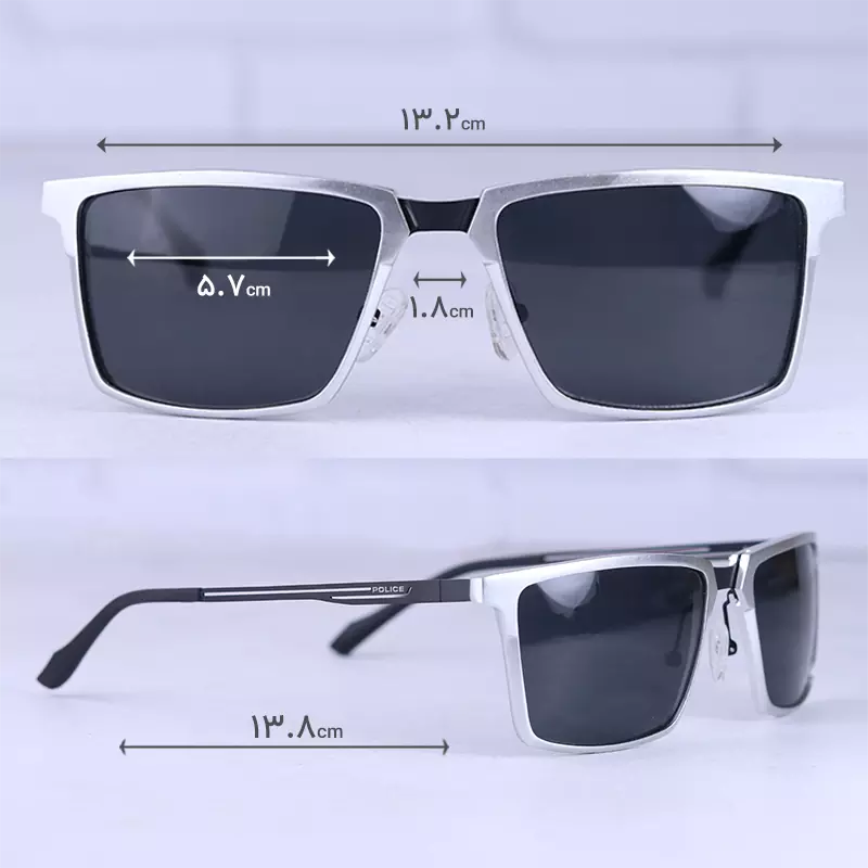 ابعاد عینک آفتابی پلیس آلومینیومی فریم نقره ای 8633/5