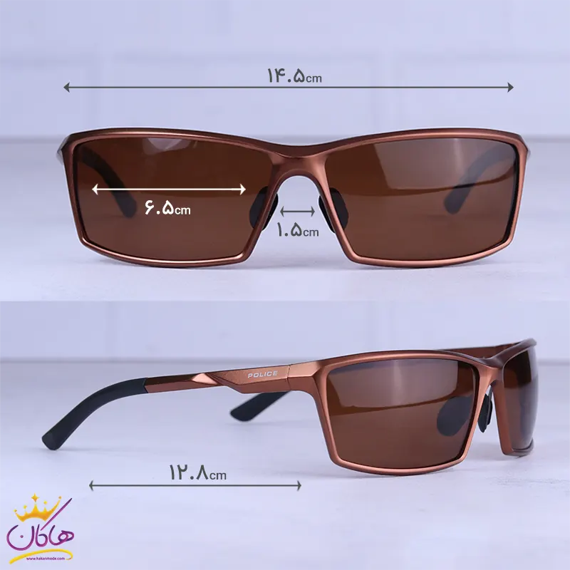 ابعاد عینک آفتابی پلیس مردانه آلومینیوم قهوه ای 8258/2