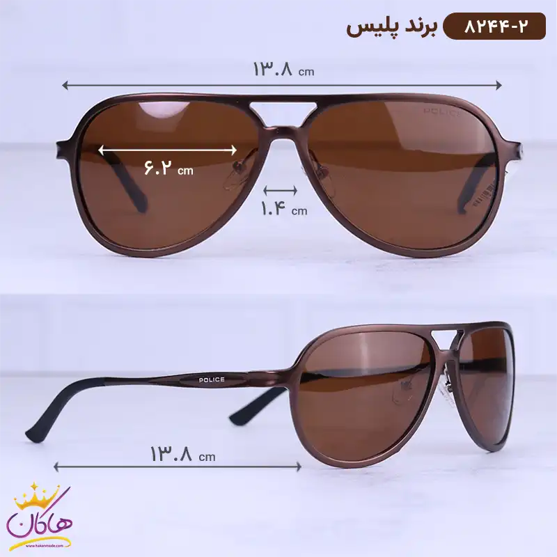 ابعاد عینک آفتابی پلیس مردانه قهوه ای 8244/2