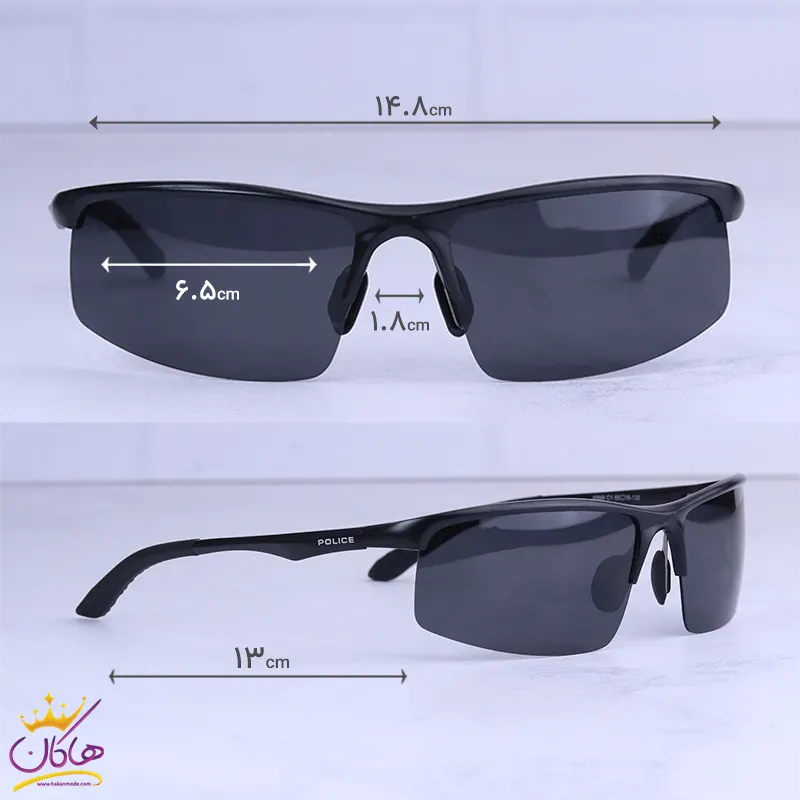 ابعاد عینک آفتابی پلیس مردانه نیم فریم مشکی 8568/1