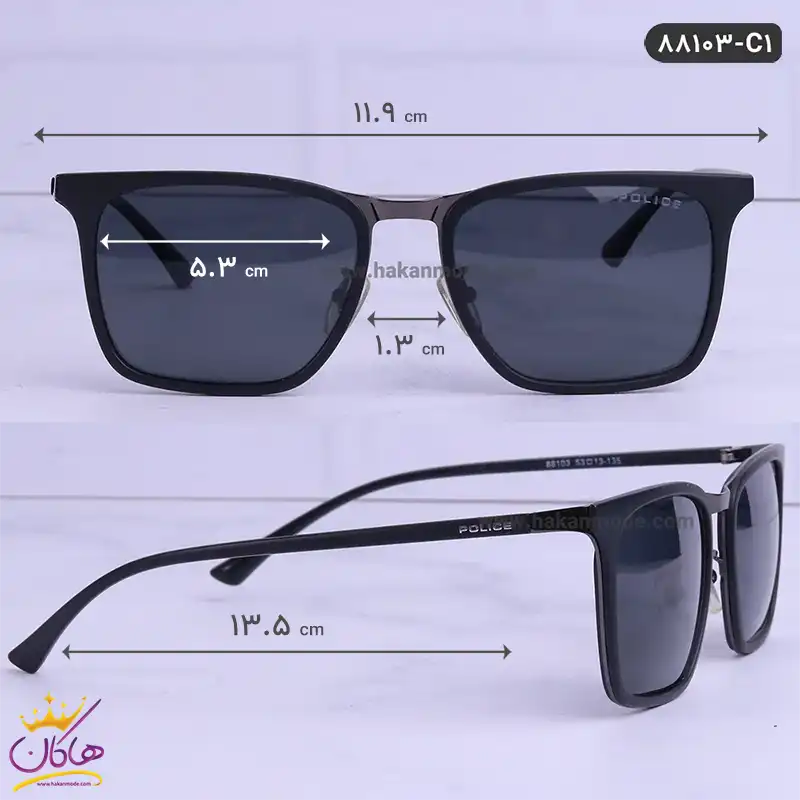 ابعاد عینک آفتابی پلیس مشکی اورجینال 88103