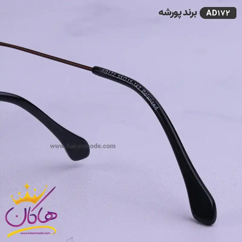 فریم این عینک که مهمترین قسمت آن است از نوع تمام فریم است. شکل این عینک مربع است. این فریم قهوه ای جذاب به خوبی روی چشم قرار می گیرد.این عینک با دیدن حرارت یا هنگامی که در معرض بازدم قرار بگیرد لوگو روی شیشه نمایان می شود که نشانه اصل بودن این محصول است. این ویژگی را به راحتی نمی توان کپی کرد. عینک آفتابی پورشه اصل قهوه ای مدل AD172 با پهنای حدود 12.5 سانتیمتر تقریبا برای تمام فرمهای صورت مناسب است اما بیشتر افرادی که صورتهای مثلثی، دایره و بیضی دارند، از طرفداران این مدل عینک هستند. پل عینک، فلزی و بینی گیر آن لاستیکی بسیار نرم و منعطف است. رنگ عدسی قهوه ای و عرض آن حدود 5.5 سانت است و چشم را کامل می پوشاند و در وسعت دید اشکالی به وجود نمی آورد. عرض پل 1.5 است و به خوبی روی بینی می نشیند. دسته عینک به رنگ قهوای و با یک قوس ملایم تا پشت گوش می رود. طول دسته 14.2 سانتیمتر و طراحی آن در قسمت میانی جالب است و دو میله فلزی دو عدسی را به هم وصل کرده است. سبکی این عینک کمک می کند تا ساعتهای طولانی روز یا هنگام رانندگی، عینک را به چشم بزنید و ابدا در قسمت گوشها یا بینی احساس سنگینی و خستگی نکنید. استفاده از این عینک محدودیت سنی و جنسی ندارد.
