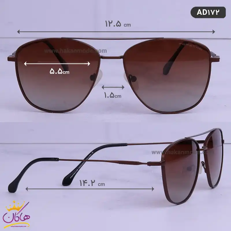 ابعاد عینک آفتابی پورشه اصل قهوه ای مدل AD172