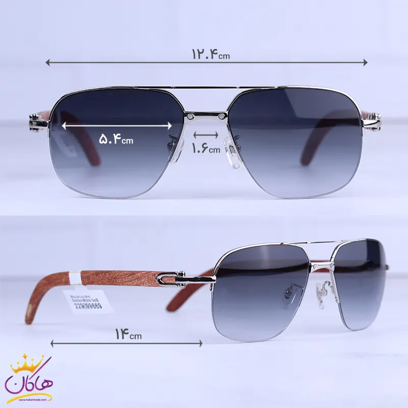 ابعاد عینک آفتابی کارتیر نیم فریم دسته چوبی t8200767/1