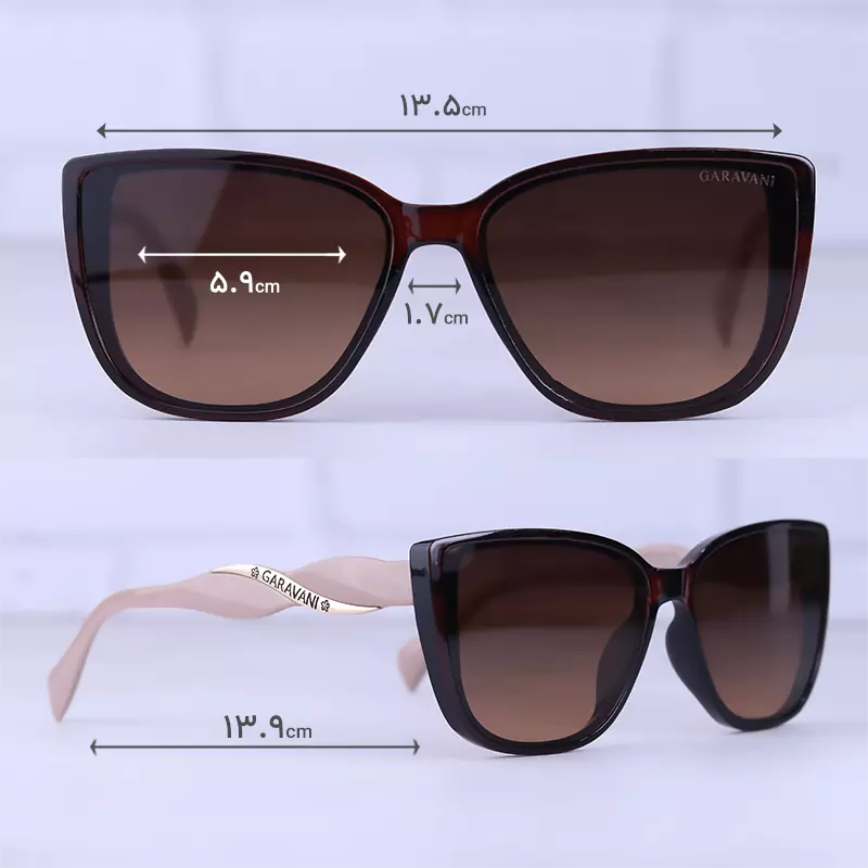 ابعاد عینک آفتابی گاراوانی زنانه فریم پروانه ای قهوه ای 8045/2