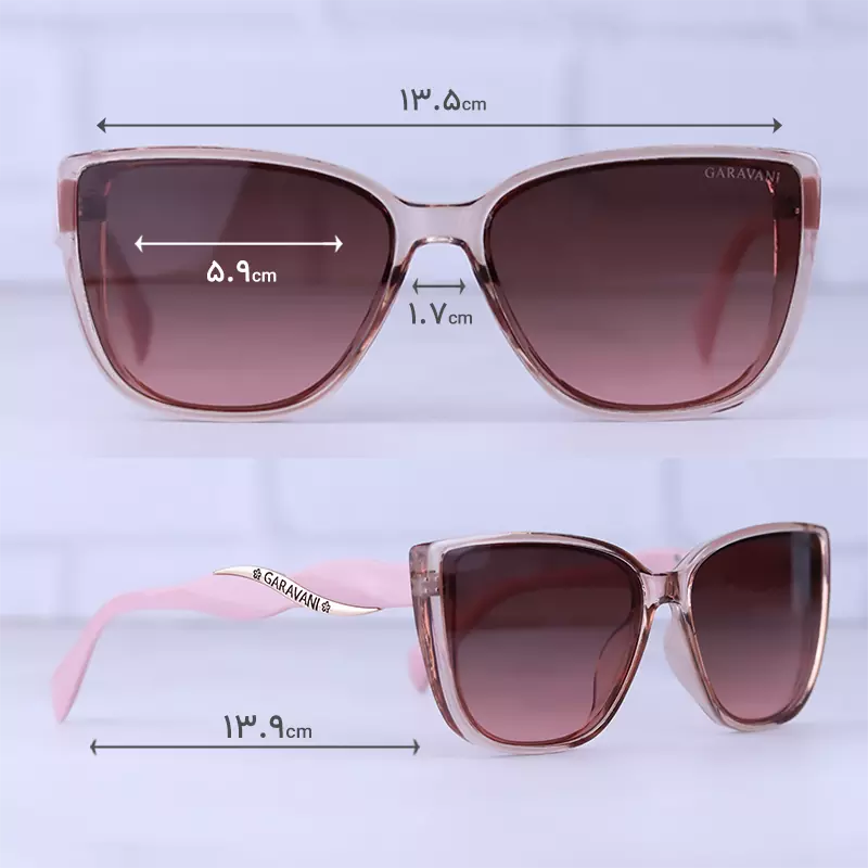 ابعاد عینک آفتابی گاراوانی زنانه فریم پروانه ای صورتی 8045/3