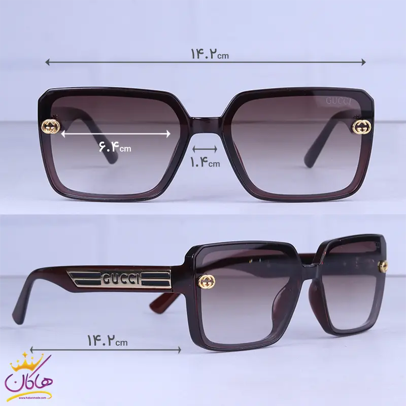 ابعاد عینک آفتابی گوچی زنانه فریم مربع قهوه ای 5214/3