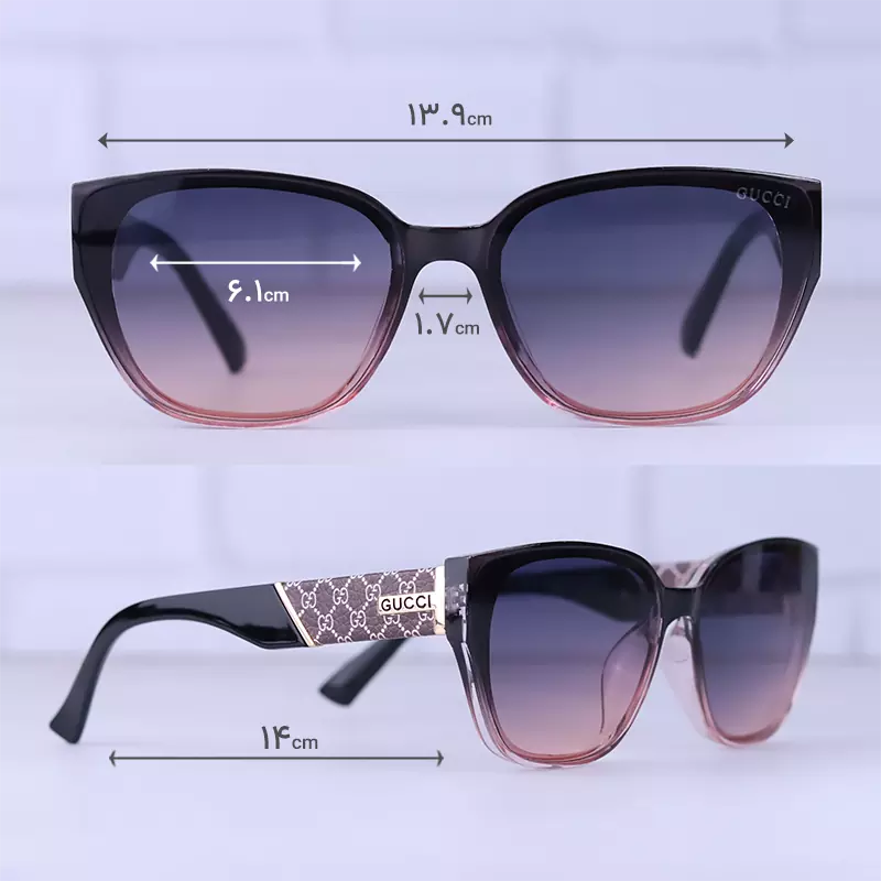 ابعاد عینک آفتابی گوچی زنانه فریم مربع مشکی صورتی 9710/5