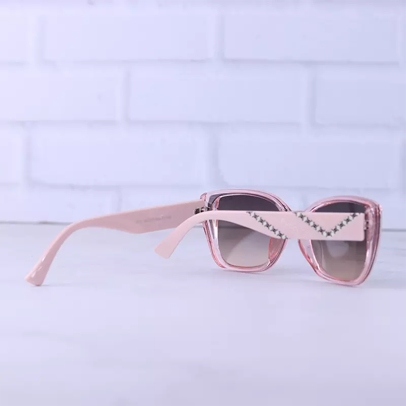عینک آفتابی گوچی زنانه فریم پروانه ای صورتی 9717/3 از نظر قیمت در حد متوسط و از نظر کیفیت از بهترین نمونه های عینک “های کپی” است. بدنه عینک از کائوچوی صورتی ساخته شده که وزن متوسط و مقاومت بالایی دارد. عدسی آن، از نوع پلی کربنات است که به علت ضدخش بودن، برای عینکهای پرکاربرد بسیار مناسب است. سبک بودن جنس فریم و داشتن انعطاف نسبی از دلایل محبوبیت این عینکهاست. عدسی این عینک از نوع یو وی 400 است که از چشم در برابر اشعه خورشید به خوبی مراقبت میکند.