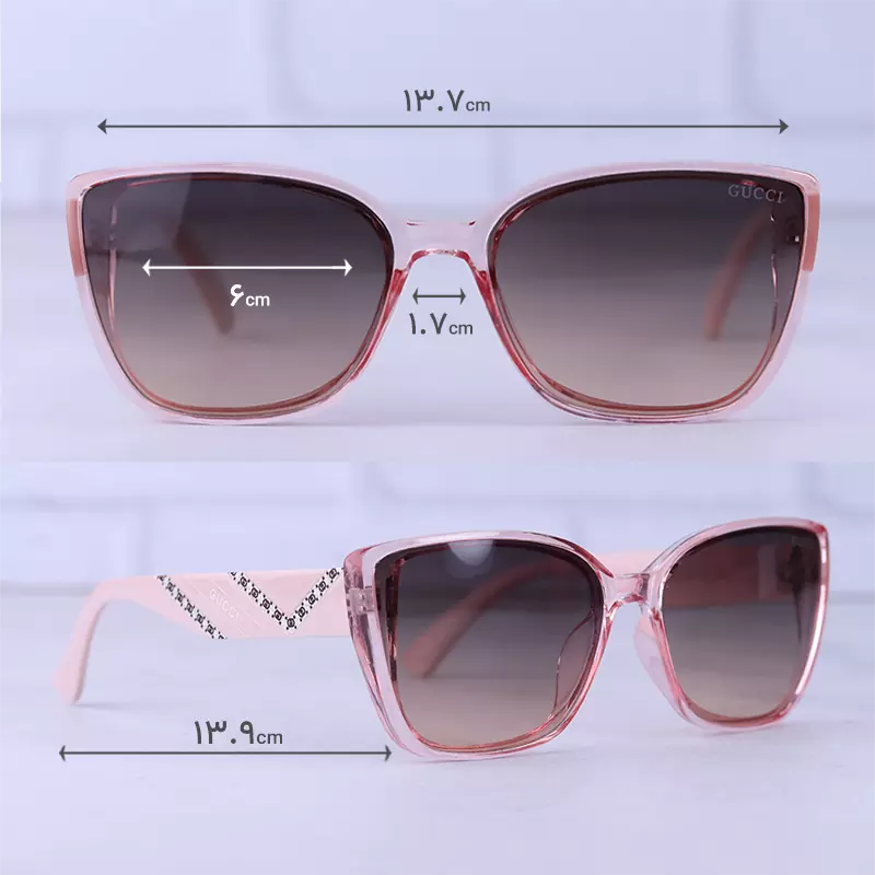 ابعاد عینک آفتابی گوچی زنانه فریم پروانه ای صورتی 9717/3