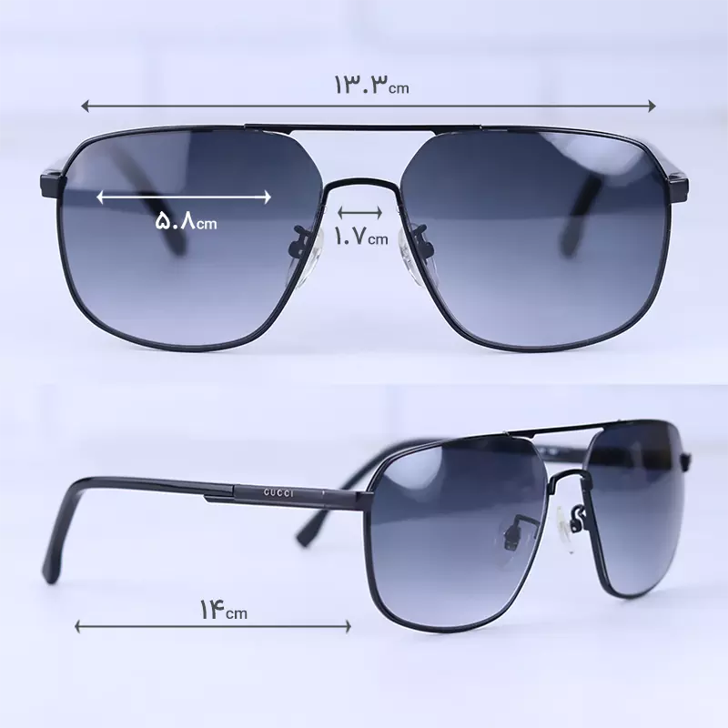 ابعاد عینک آفتابی گوچی مردانه فریم خلبانی مشکی GG 1234/1