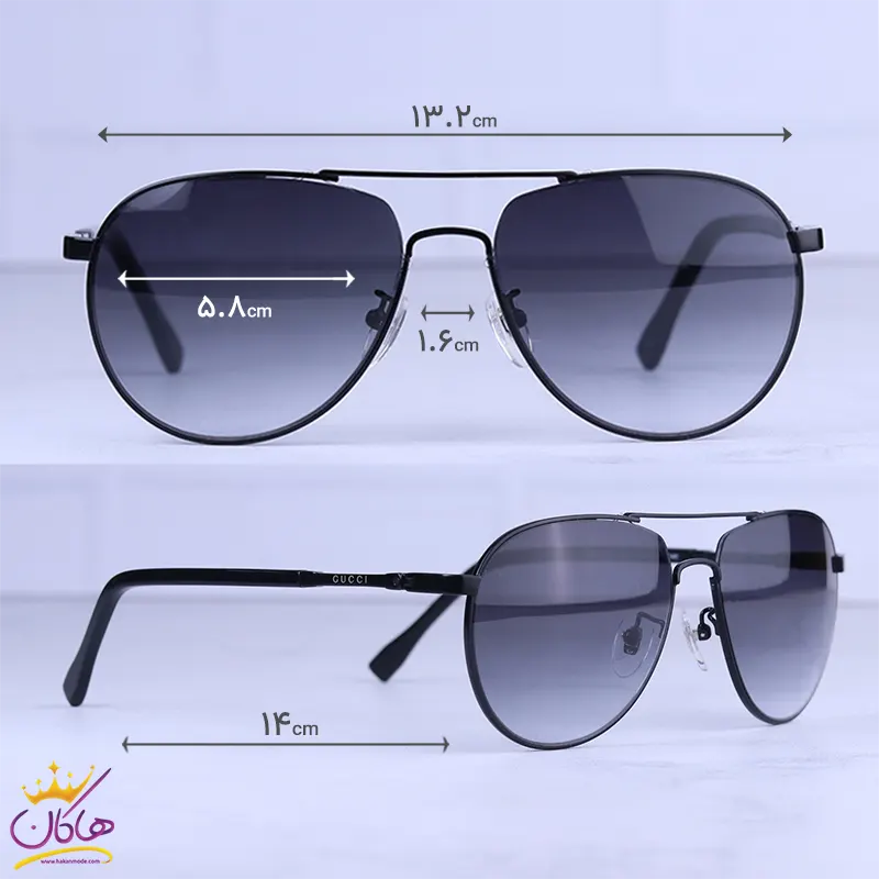 ابعاد عینک آفتابی گوچی مردانه فلزی خلبانی مشکی GG 1236/1