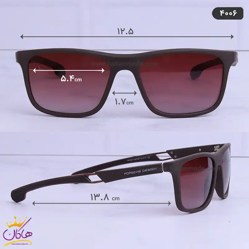 ابعاد عینک افتابی پورشه قهوه ای اورجینال مدل 4006