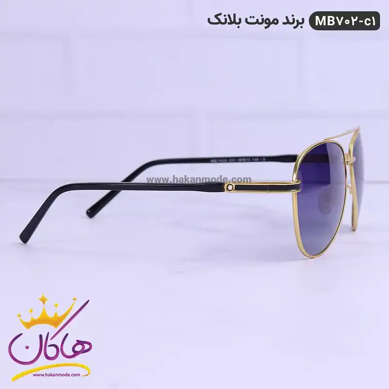 ابعاد عینک اورجینال خلبانی مونت بلانک طلایی سورمه ای کد 702