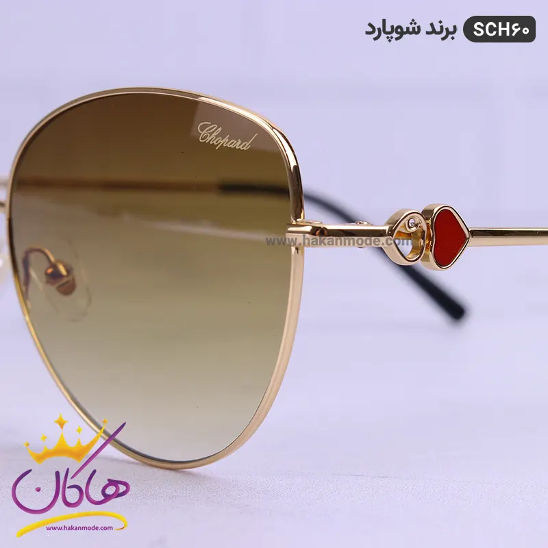 فریم این عینک که مهمترین قسمت آن است تقریبا به شکل گربه ای است. این فریم طلایی جذاب به خوبی روی چشم قرار می گیرد. عینک اورجینال فلزی شوپارد قهوه ای کد SCH 60 با پهنای حدود 14 سانتیمتر تقریبا برای تمام فرمهای صورت مناسب است اما بیشتر افرادی که صورتهای قلبی، مربع، مثلثی و بیضی دارند از طرفداران این مدل عینک هستند. پل عینک، فلزی و بینی گیر آن لاستیکی بی رنگ و بسیار نرم و منطف است. رنگ عدسی قهوه ای روشن و عرض آن حدود 5.6 سانت است و چشم را کامل می پوشاند و در وسعت دید اشکالی به وجود نمی آورد. عرض پل 1.6 است و به خوبی روی بینی می نشیند. دسته ظریف عینک به رنگ طلایی و دو قلب زیبا که یکی قرمز و دیگری توخالی است، جذابیت این عینک را دوچندان کرده است. طول دسته حدود 14 سانتیمتر است. سبکی این عینک کمک می کند تا ساعتهای طولانی یا هنگام رانندگی، عینک را به چشم بزنید و ابدا در قسمت گوشها یا بینی احساس سنگینی و خستگی نکنید.