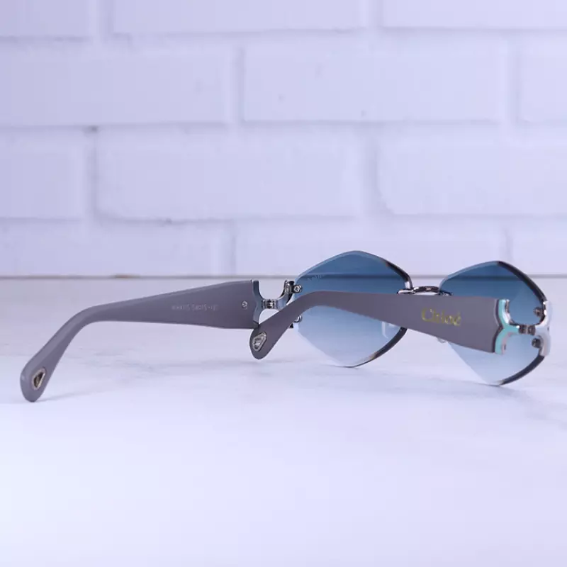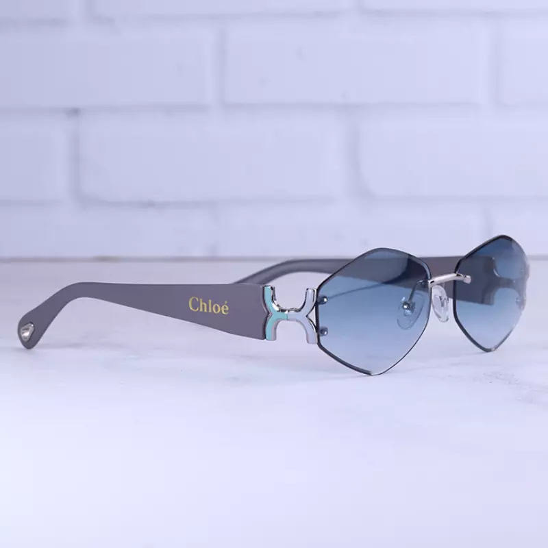 فریم این عینک که مهمترین قسمت آن است از نوع بدون فریم و به شکل چند ضلعی است. افرادی که صورتهای گرد، بیضی و مثلث دارند، از طرفداران پروپاقرص این مدل عینک هستند. عرض عینک آفتابی کلویی حدود 12.3 سانتیمتر است. پل عینک استیل نقرهای و بینی گیر آن از جنس لاستیکی بسیار نرم و منعطف است. عرض پل 1.5 سانت است و به خوبی روی بینی مینشیند. رنگ عدسی آبی و عرض آن حدود 5.4 سانت است و چشم را کامل میپوشاند و در وسعت دید اشکالی به وجود نمیآورد. دسته عینک کائوچوی طوسی است و نام برند عینک CHLOE به صورت درشت روی دسته دیده میشود و طول دسته حدود 13.9 سانتیمتر است. این عینک تقریبا سبک است.