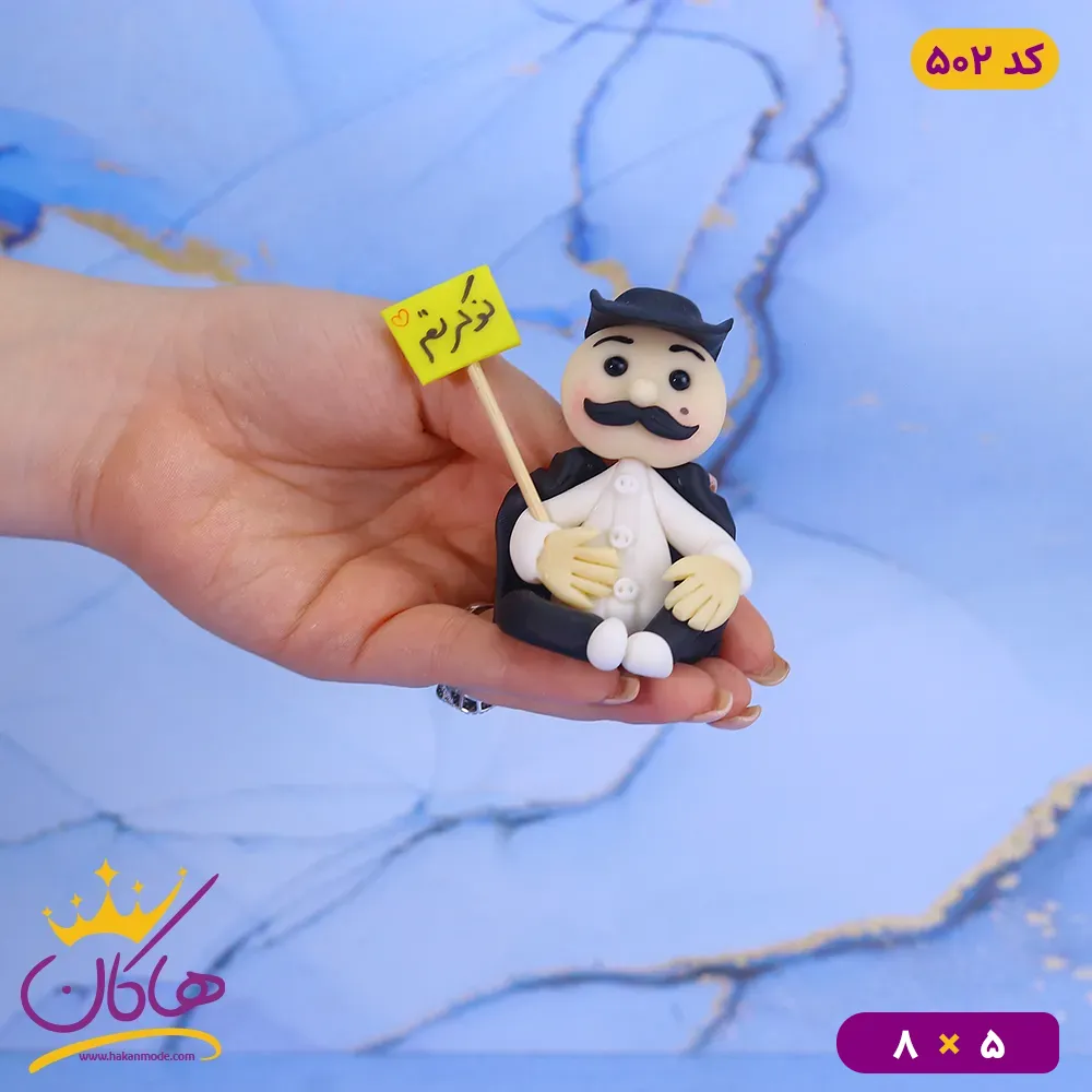 خرید مجسمه خمیری نوکرتم هم میتواند برای هدیه دادن باشد و هم برای تزیین پک ولنتاین و تولد. طراحی این مجسمه به صورت یک مرد با سیبیل و کلاه قدیمی و یک کت که روی شانه اش قرار داده و تابلوی نوکرتم را در دستش گرفته است. که میتواند عشق و وابستگی خود را به شما نشان دهد.