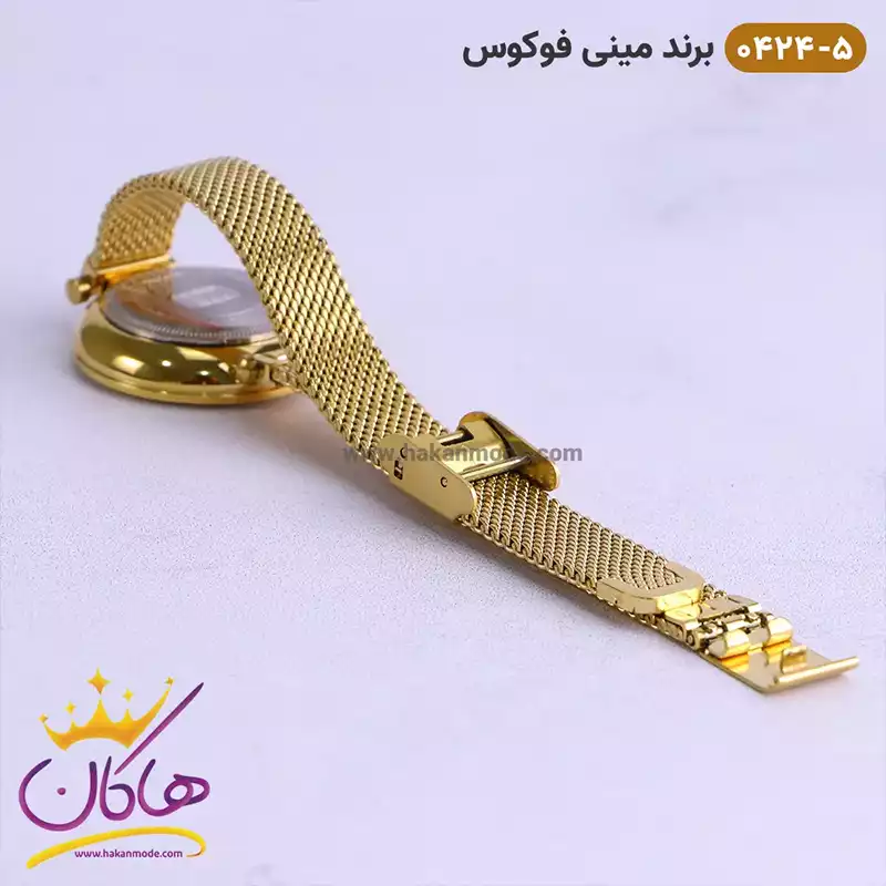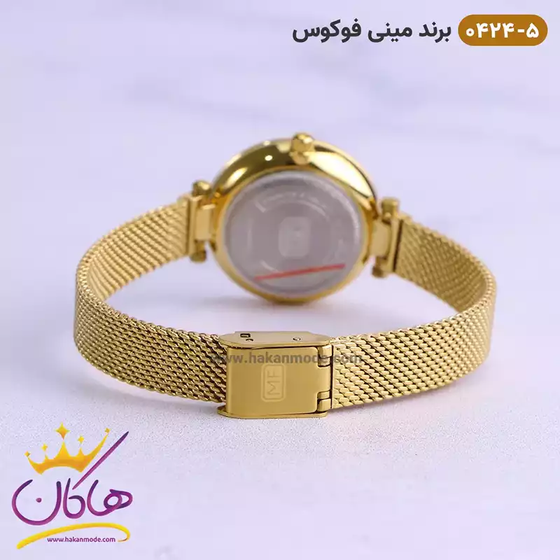 ساعت مینی فوکوس زنانه بند حصیری طلایی MF 0424/5 نمای باز قفل