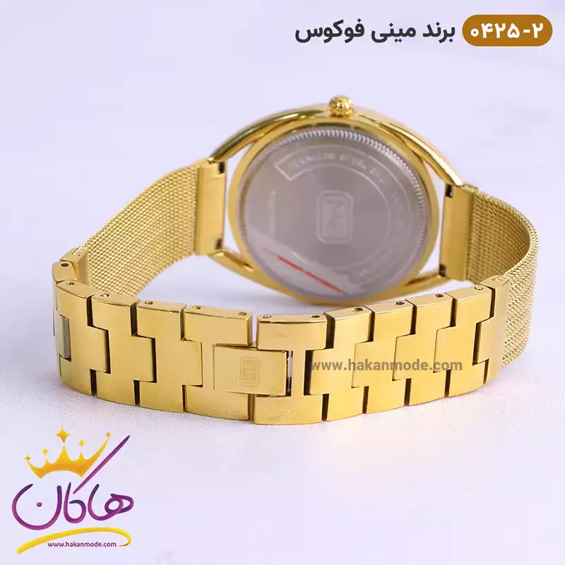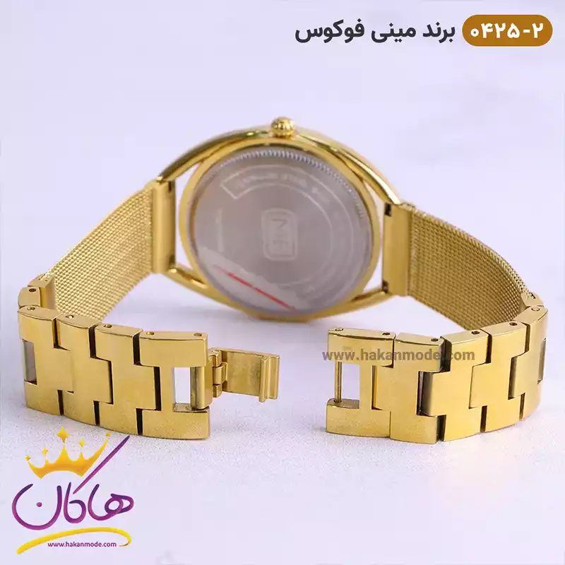 ساعت مینی فوکوس زنانه بند فلزی طلایی MF 0425/2 نمای باز قفل