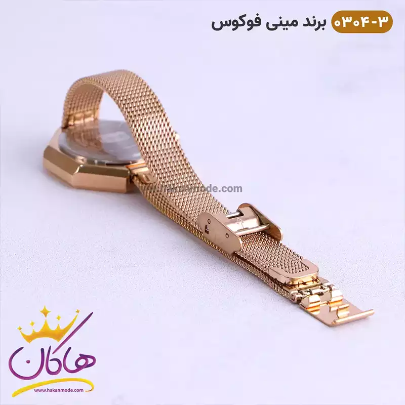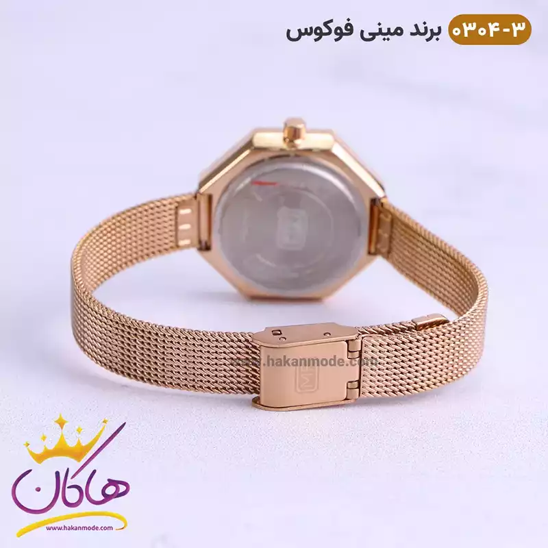 ساعت مینی فوکوس زنانه رزگلد صفحه چند ضلعی MF 0304/3 نمای بسته قفل