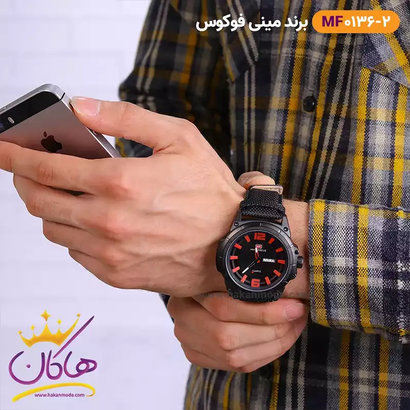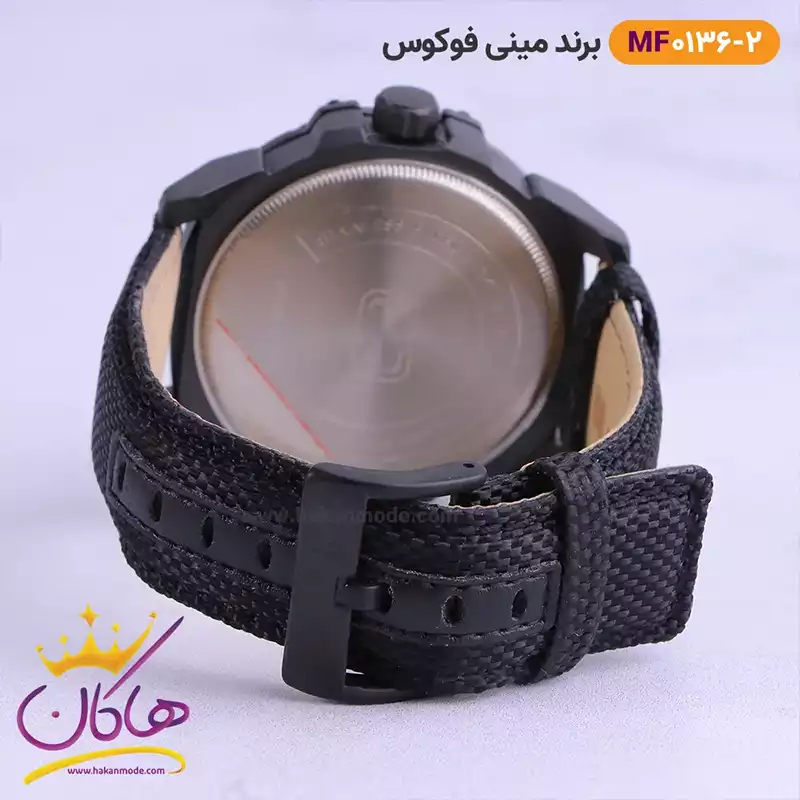 بهترین قیمت ساعت مینی فوکوس مشکی بند برزنتی اندکس قرمز MF 0136/2