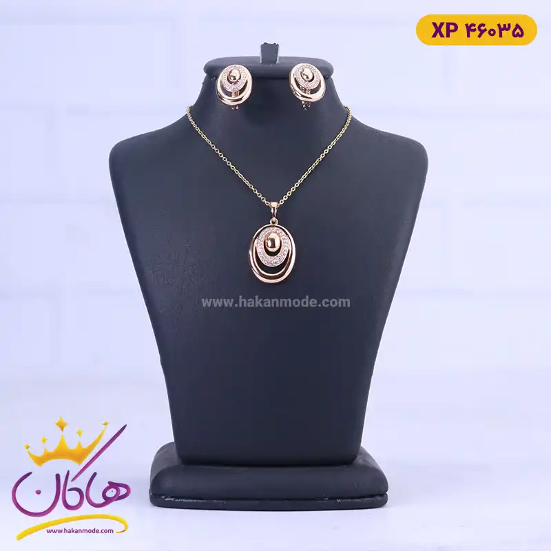 نیم ست استیل زنانه بیضی نگین دار | کد xp 46035