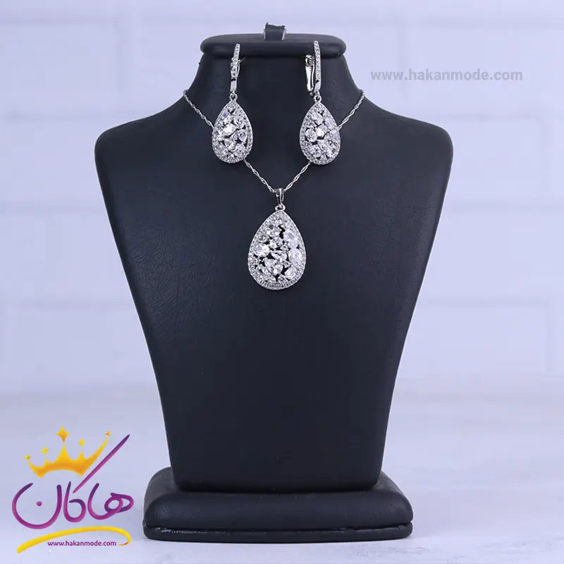 نیم ست استیل زنانه طرح اشک نگین دار از نمای نزدیک