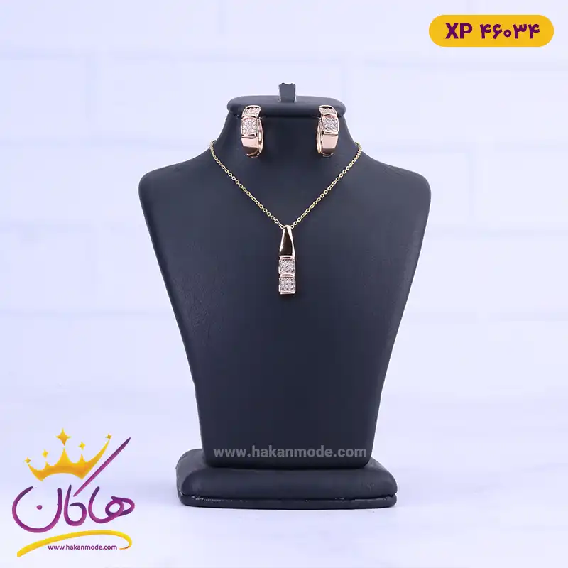نیم ست استیل زنانه نگینی طلایی | کد XP 46034