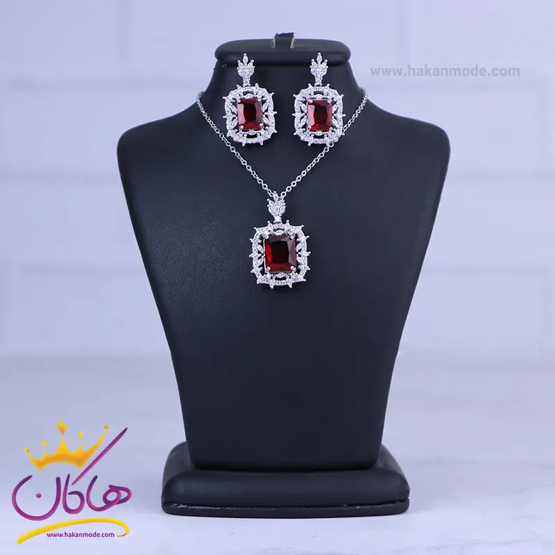 خرید نیم ست استیل زنانه نگین مربع قرمز با بهترین قیمت