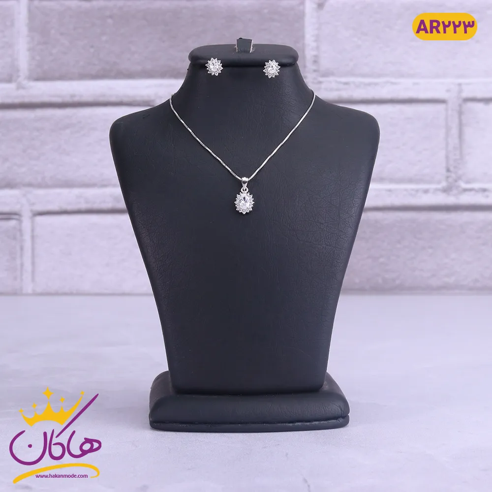 نیم ست نقره خورشیدی بیضی نگین دار | AR 223