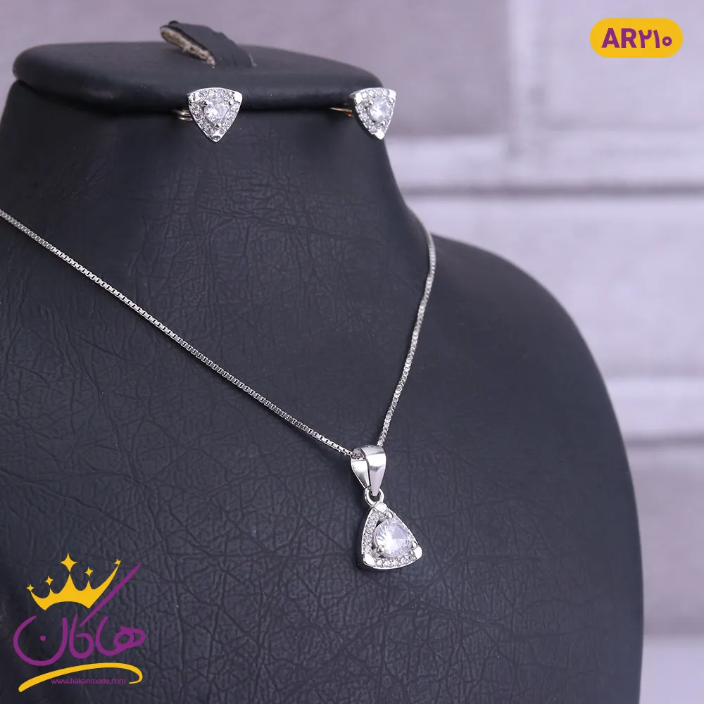 نیم ست نقره مثلثی نگین دار | AR 210 قیمت اصلی: 527.850 تومان بود.قیمت فعلی: 459.000 تومان.