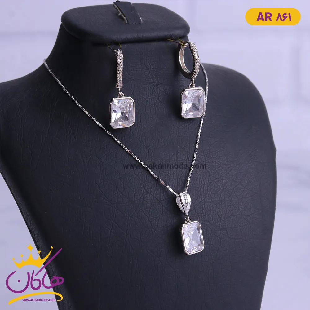 نیم ست نقره زنانه مدل تک نگین مستطیل | کد AS 861