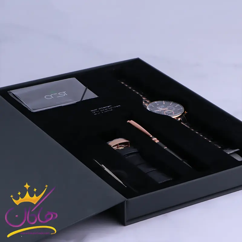 خرید پک ساعت مچی مردانه کرست استیل مشکی رزگلد 9025/5