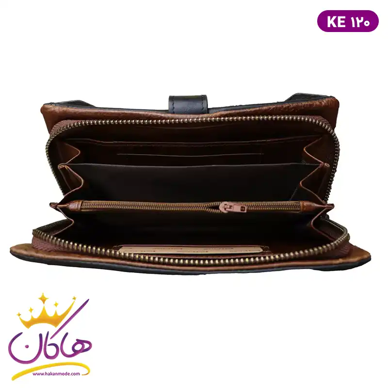 دارای زیپ است که می تواند محلی برای قرار دادن پول خرد باشد . در بدنه کیف چهار جای کارت