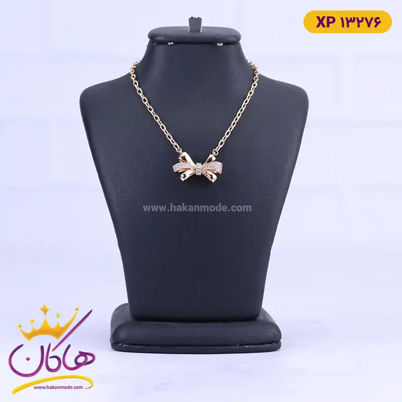 گردنبند استیل زنانه آویز پاپیون طلایی | xp 13276