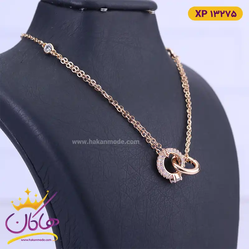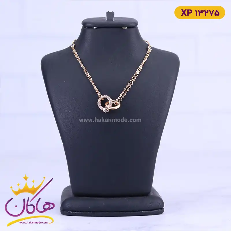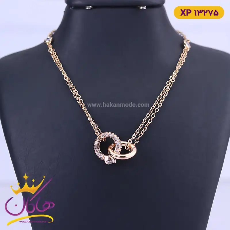 گردنبند استیل زنانه دو حلقه طلایی | xp 13275