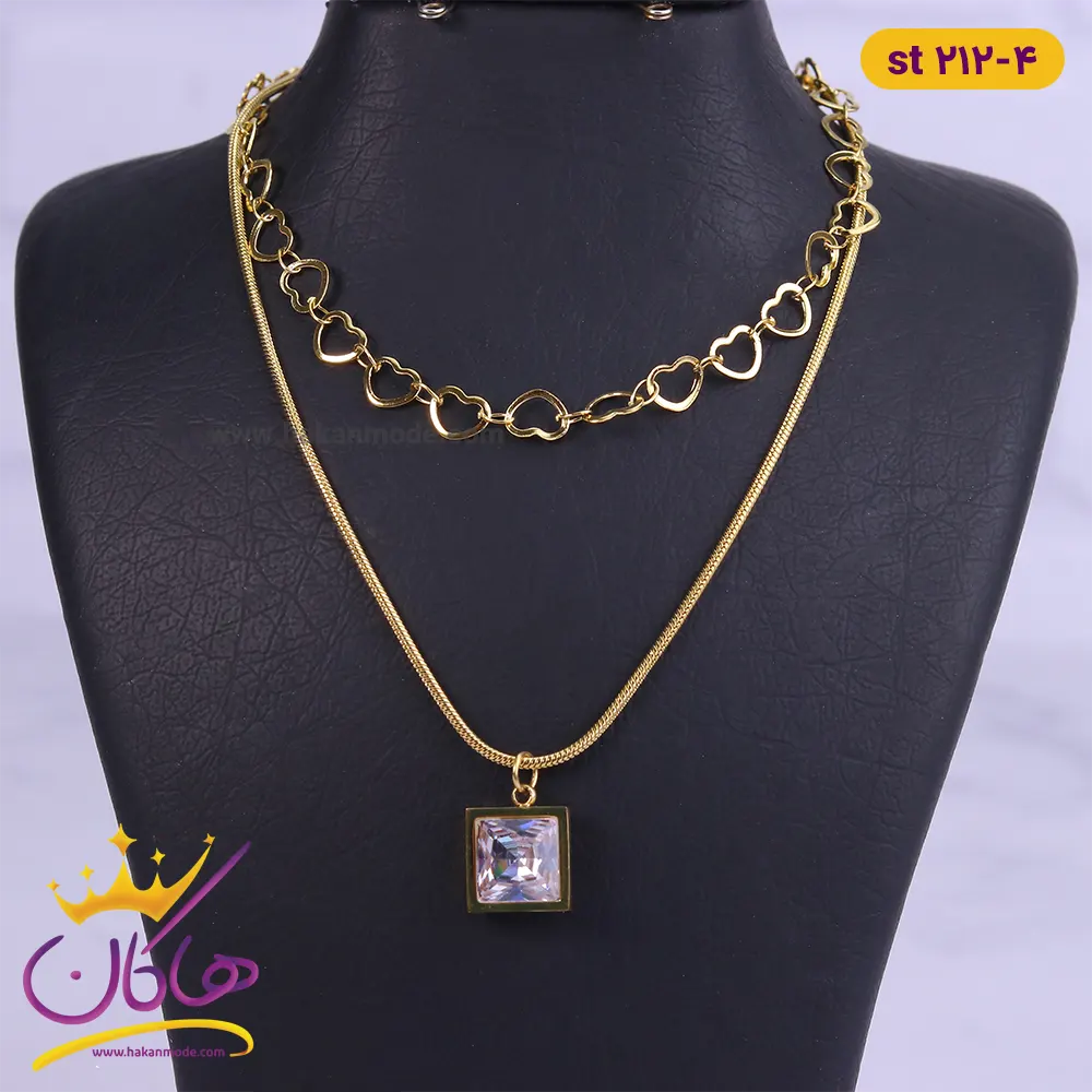 خرید گردنبند استیل زنانه دو لاین قلب و آویز مربع با بهترین قیمت
